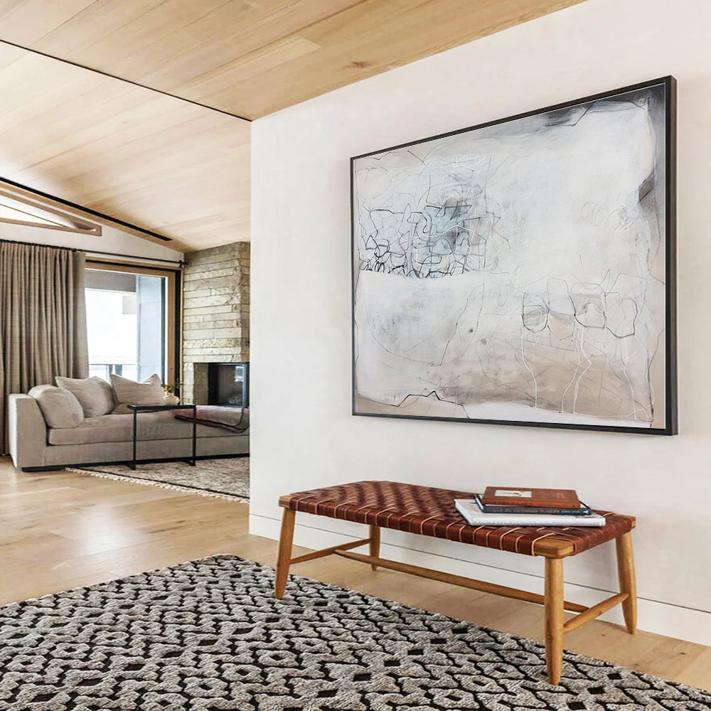 Gray, Beige, Black Abstract Line Art Acrylic Painting WB025