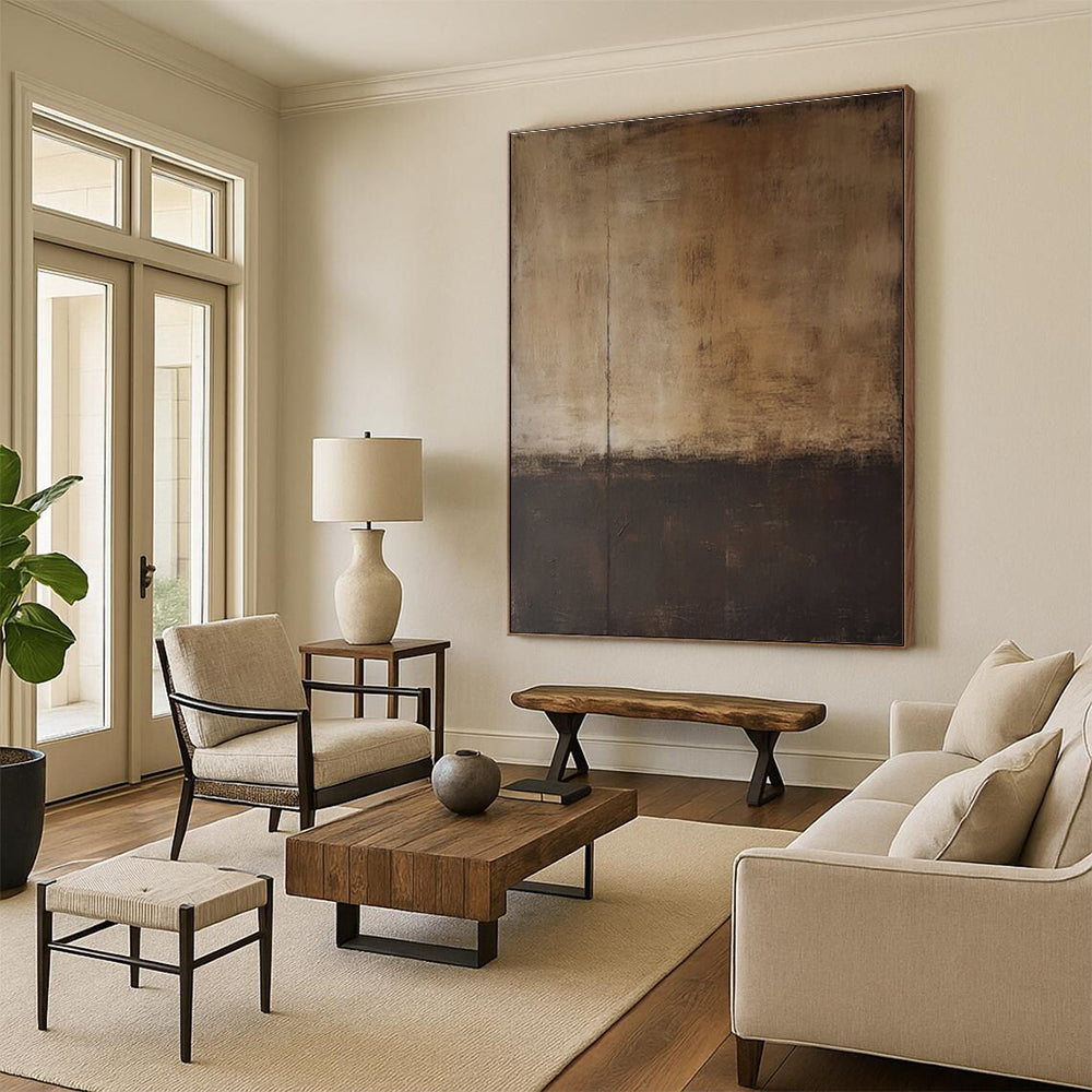 Hand Painted Art Brown and Black Textured Abstract Art HS761