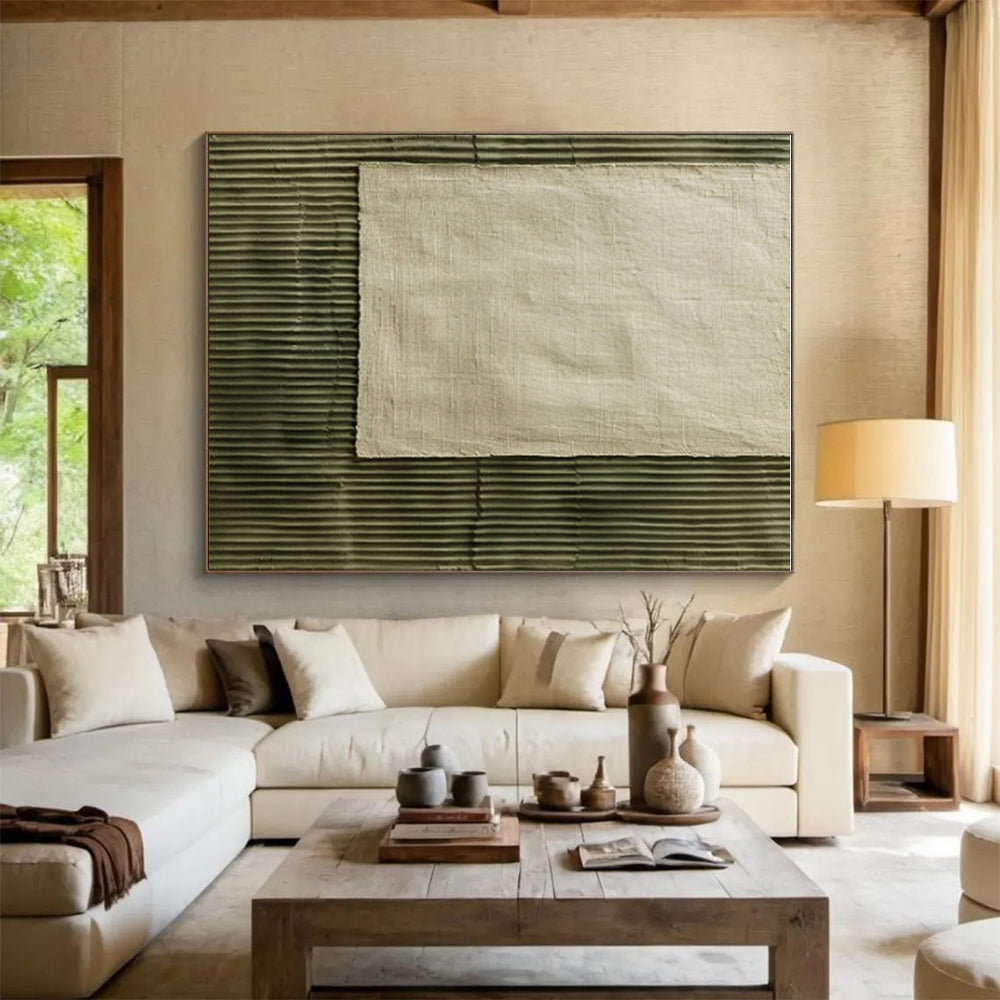 Hand Painted Art Green & Beige Textured Abstract, Acrylic Modern Art Paintings HS356
