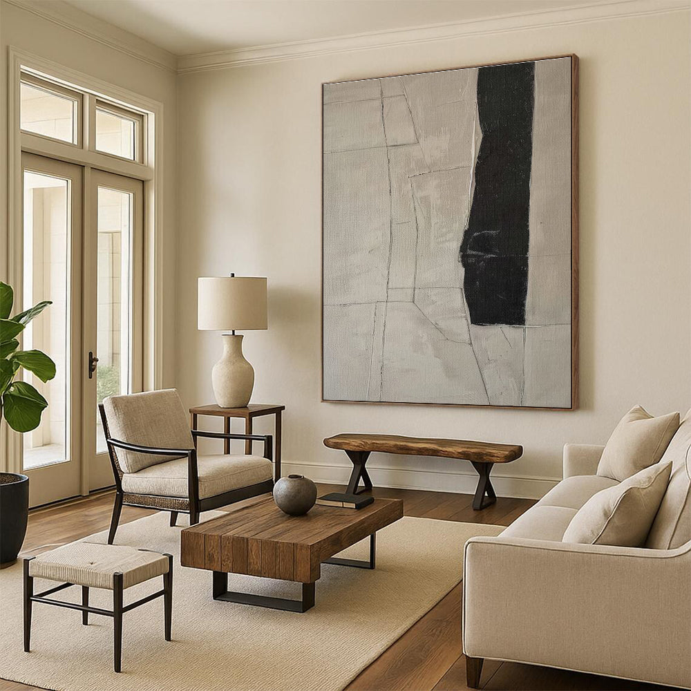 Hand-Painted Black & Beige Textured Abstract, Acrylic Modern Art Painting HS370
