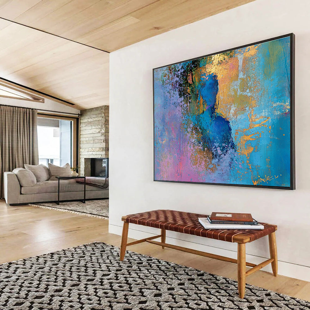 Huge Size Blue, Purple, Gold, and Pink Abstract Figural Art - Acrylic Painting WB278