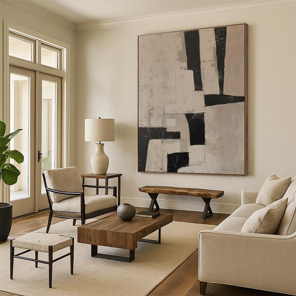 Modern Art Acrylic Black and Beige Geometric Abstract Art HS634