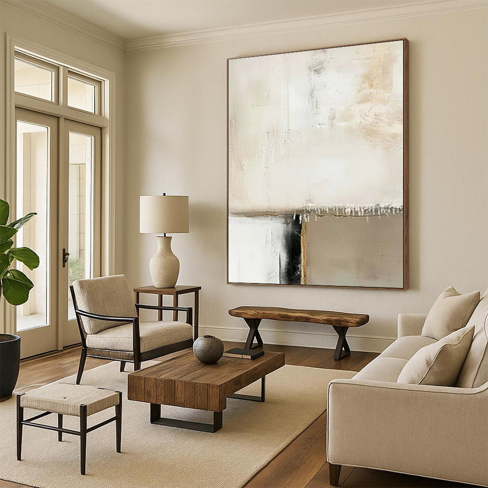 Unique Abstract Art Beige, White, and Black Textured Abstract Painting On Canvas HS786
