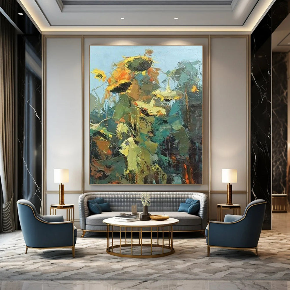 Yellow, Orange, and Green Abstract Sunflower Painting For Sale Online WS484